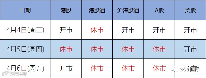 安信国际 | 假期休市安排:今日港股休市(4月5日)