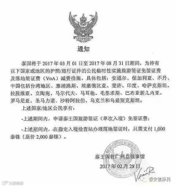2、落地签办理费用由2000泰铢减至1000泰铢