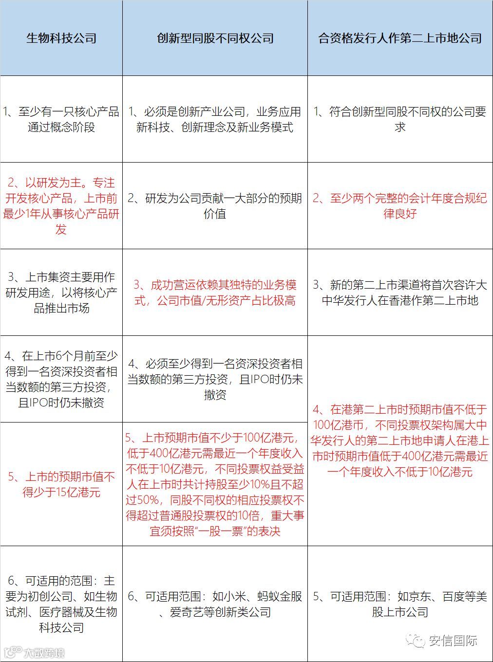 港交所为三类型企业设下不同门槛,以下为具体细则,供大家参考。
