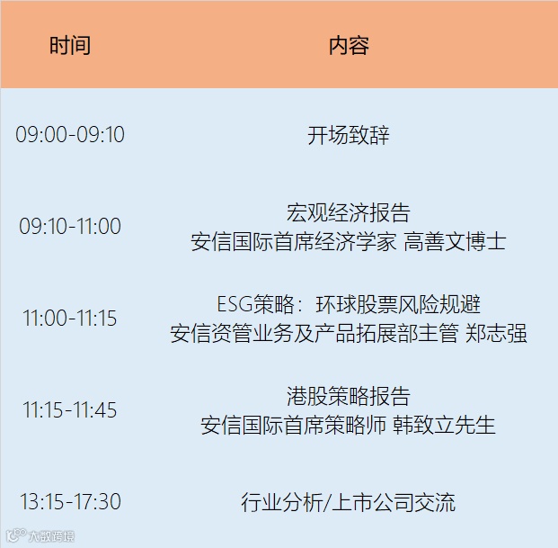 我们同时会邀请40多家极具投资价值的香港上市公司与投资者交流。诚邀各位上市公司高管、产业专家、机构投资者拨冗参加本次大会!我们将与您共同深入探讨与交流,安信国际致力为您搭建价值投资的平台!
