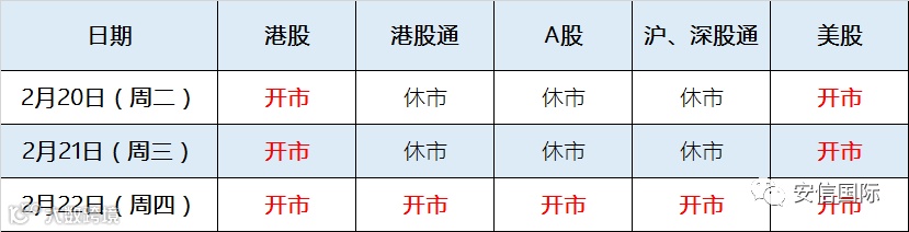 安信国际 | 春节假期休市安排:今日港股开市(2月20日)