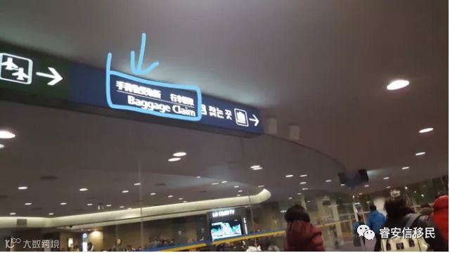 然后按照1-8号向左,9-23向右的提示,去取行李。你们需要乘坐滚梯下楼哦。