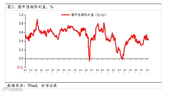 11月上旬,尽管资金面情况比10月底有所松动,银行间回购利率有所下行,但债券收益率并未出现明显回落,短端债券收益率甚至还有轻微上行。与10月底相比,1年期国开债收益率上行4 BP,1年期国债收益率上行1 BP;5年期国开债上行6BP,10年期国债收益率基本持平。10月以来,国开债期限利差明显扩大。