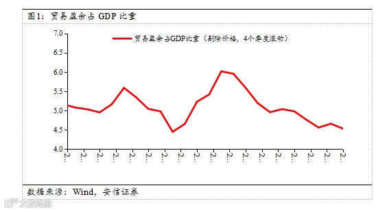 今年以来,贸易盈余占GDP比重基本稳定,进一步考虑到供给侧和环保等政策对供给上的限制,真实的贸易盈余应该是有所扩张的。这也体现了全球经济恢复对中国经济增长的拉动。过去几个月市场似乎对出口数据的反应比较敏感,似乎也与此有关。