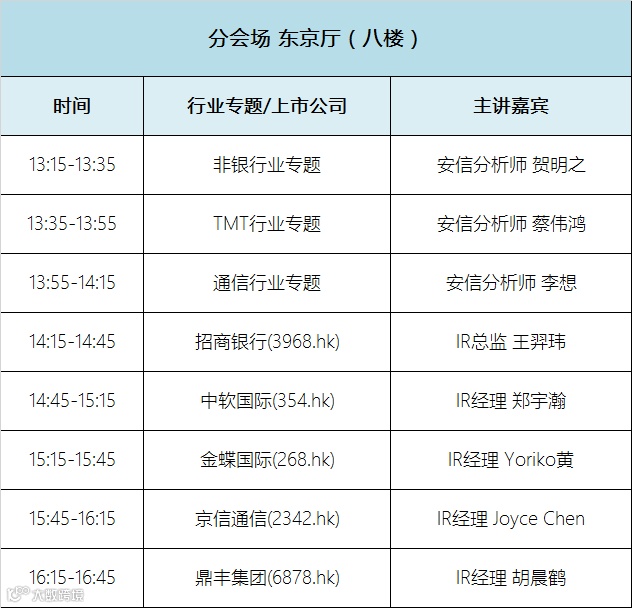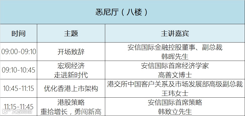 我们将竭力打造和客户深度互动的精品策略会,届时,安信证券首席经济学家高善文博士将分析中国经济的最新发展, 安信国际首席策略分析师韩致立先生将点评港股新格局的投资策略。 今次的策略会,我们特别邀请了港交所专家解读香港上市机制改革可能带来的投资新机遇;下午各行业分析师将阐述他们具有前瞻性和影响力的观点。 我们也将邀请30余家极具投资价值的香港上市公司与投资者交流。策略会兹定于2018年1月18日在深圳福田马哥孛罗好日子酒店举办,借此诚邀您拨冗参加!
