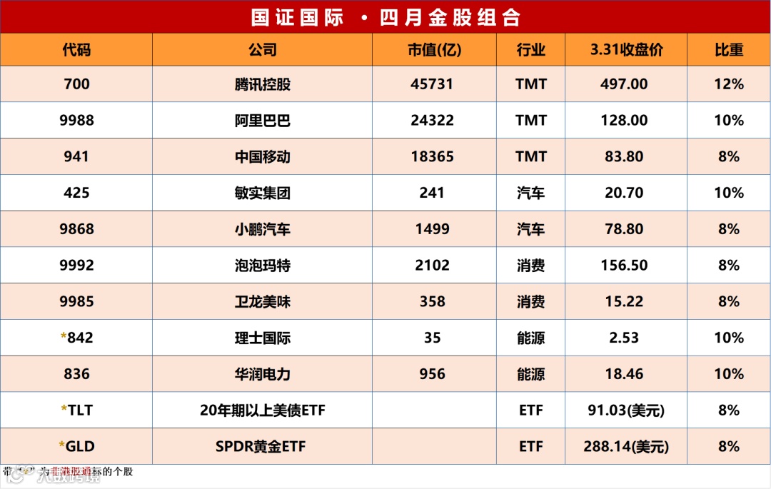 导读:在全球市场波动加剧大背景下,国证国际重磅推出港股金股组合,从全行业的角度出发,随市场变化动态更新,力求为投资者提供高品质的研究支持。