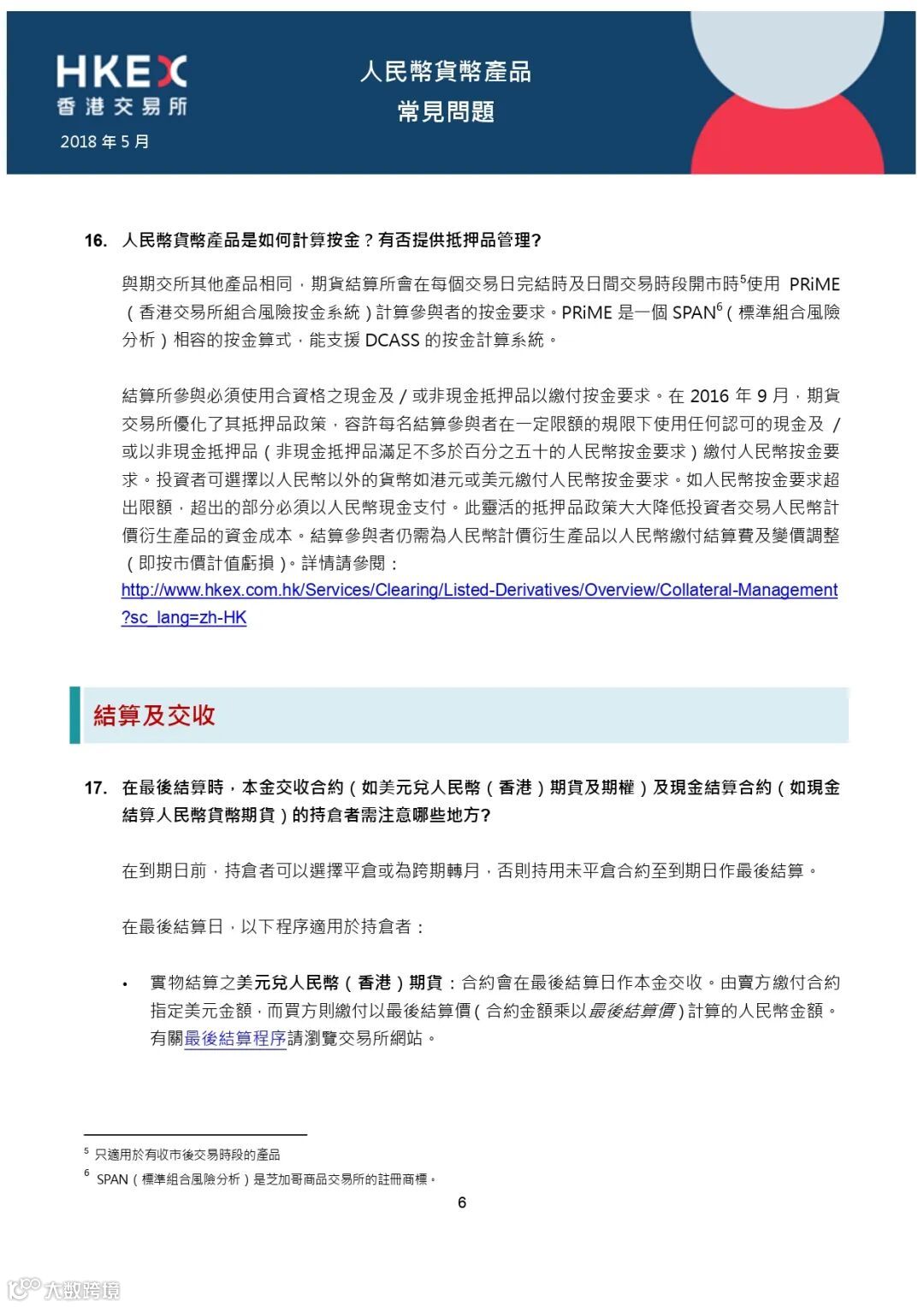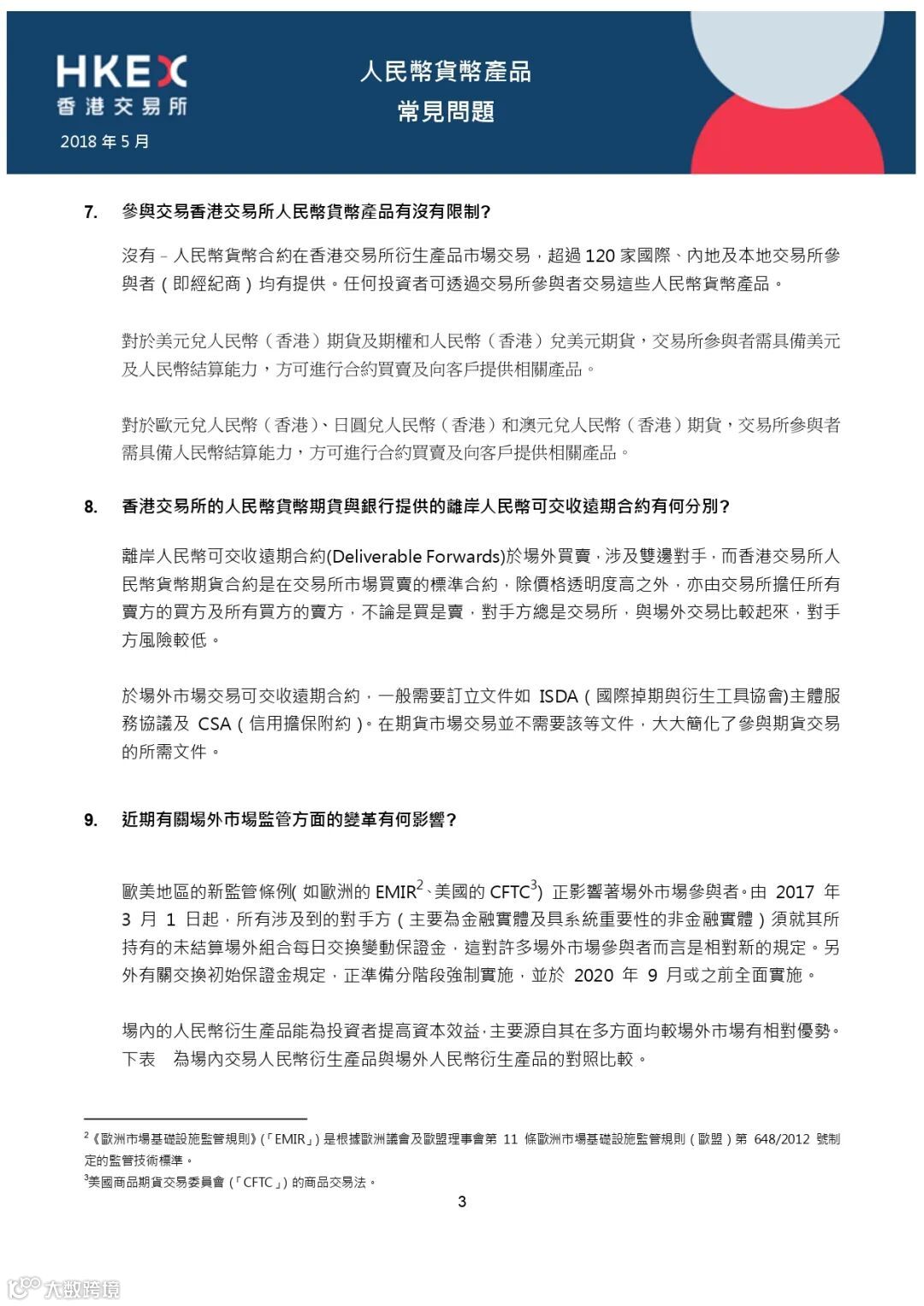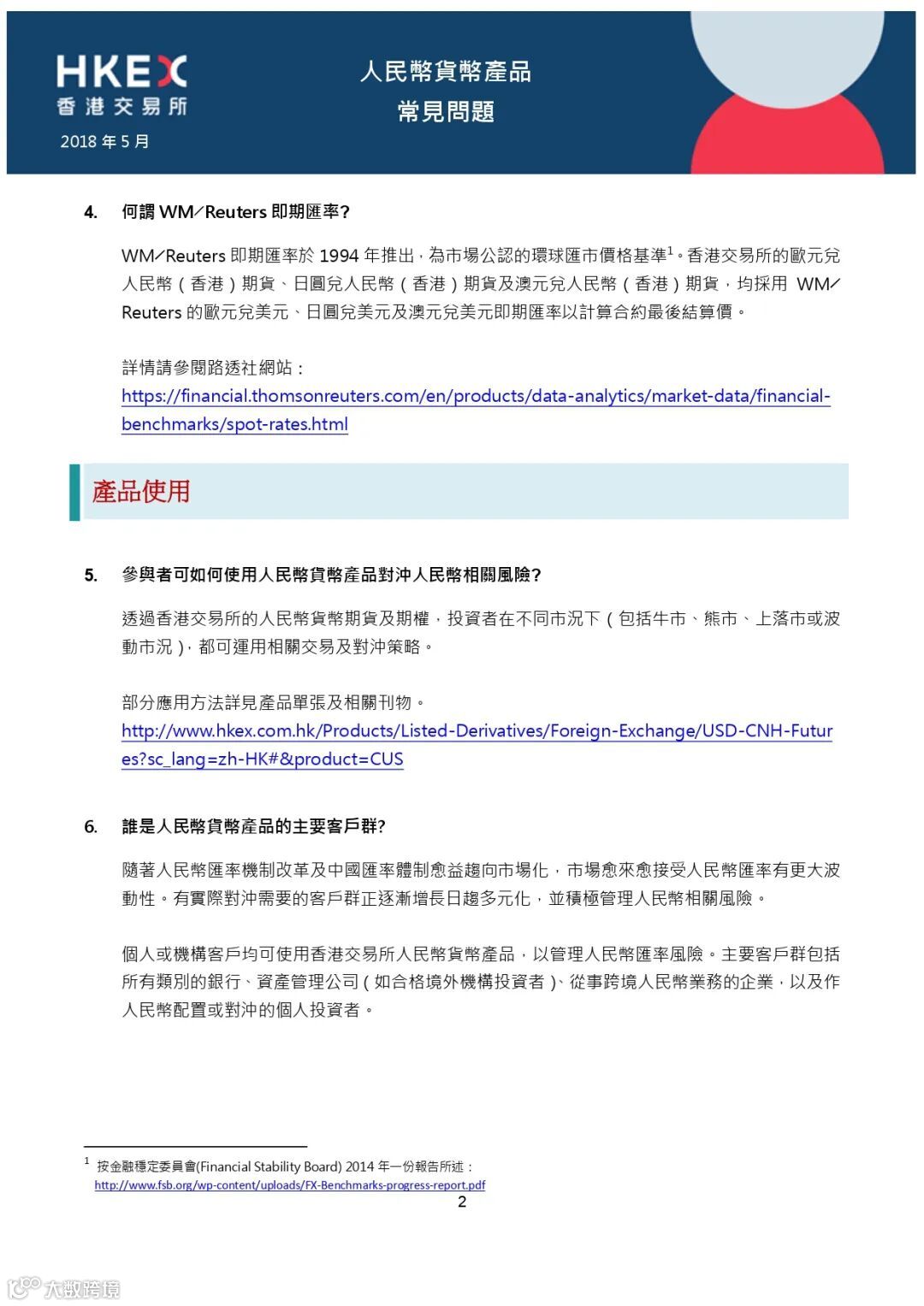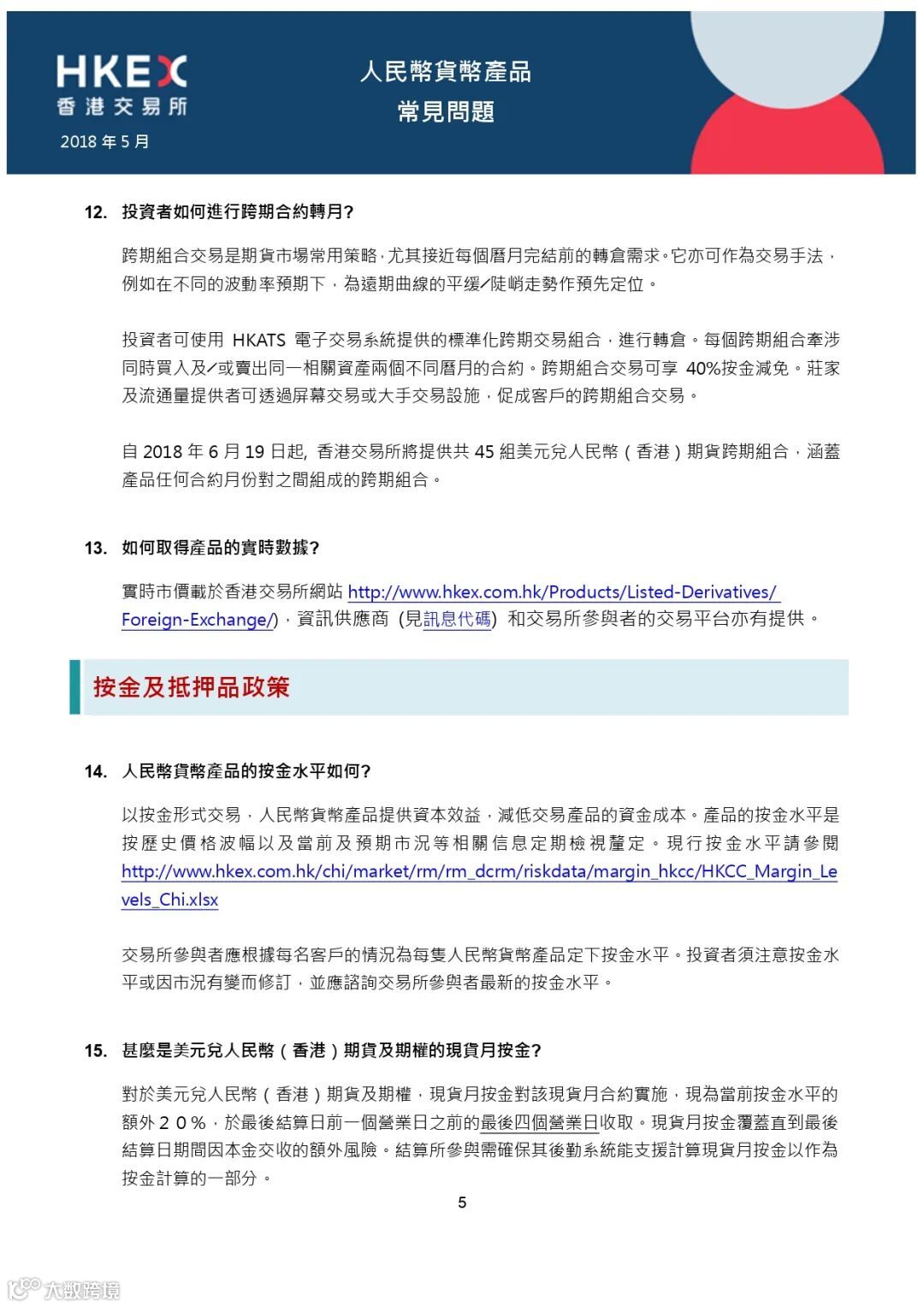 离岸人民币(CNH)的发展是人民币迈向国际化的重要一步,有助人民币逐步成为国际储备货币。在此期间,离岸人民币市场一直持续并显著增长。香港交易所于2012年9月推出美元兑人民币(香港)期货,为全球首只人民币可交收货币期货合约,其报价、按金计算以及结算交收均以人民币为单位,并有助提高离岸人民币市场的资本效益及相关风险管理的灵活性。