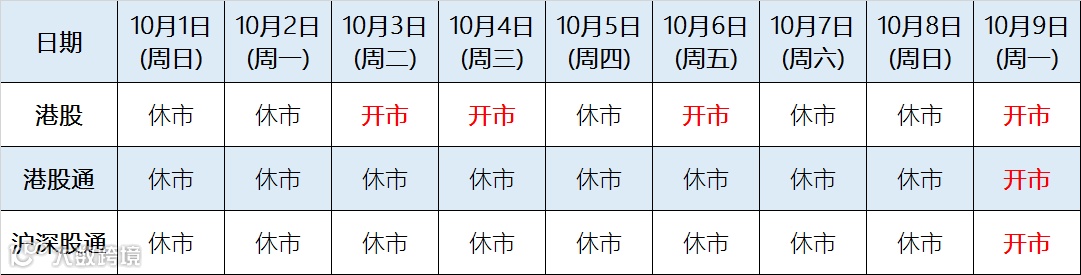 导读:因国庆假期,港股及沪深港股通休市安排如下: