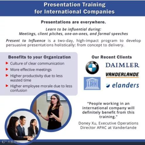 Her company specializes in helping people increase their influence through how they present their ideas. She speaks 4 languages, has lived and worked in 7 countries, and has visited nearly 40 nations. Her unique background and close work with HR has given her an inside look into what top companies want in new recruits.