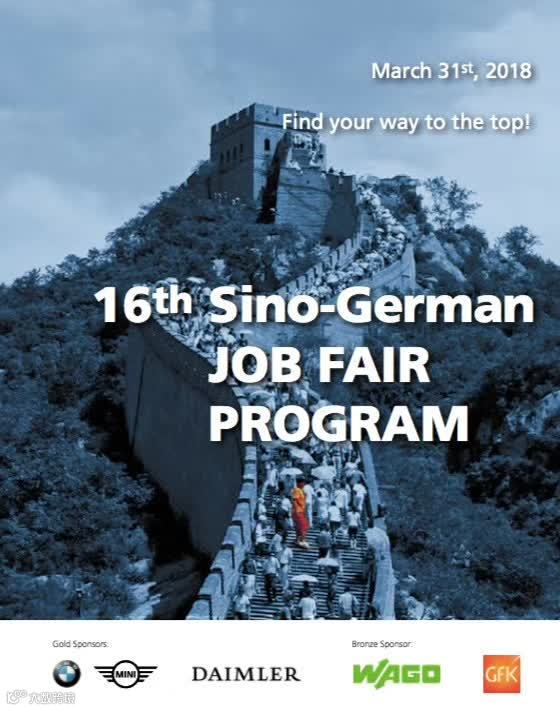 To support German companies in their talent search, the German Industry & Commerce Greater China - Beijing, will organize the 16th Sino-German Job Fair on March 31st, 2018. Our aim is to offer a platform for young talents and top German companies to communicate in person and explore potential synergies online and offline.