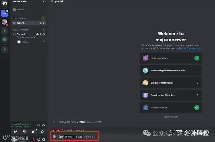 那正如Midjourney一样,我们如果在公共区域生成视频或者图片就会存在信息直接被刷没了,我们当然也可以把DOMO AI拉到自己的服务器,这样后面生成以及输出的信息都只有我们自己的信息了。具体步骤如下。