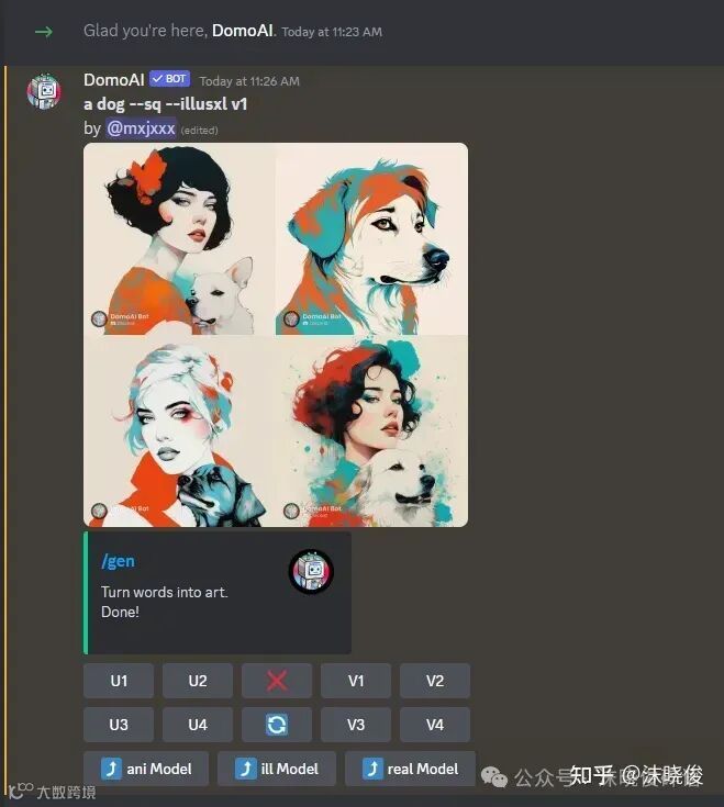 这里我们用/gen的命令来出一张图来看一下,我就以a dog来为例,输入完成后我们敲回车。