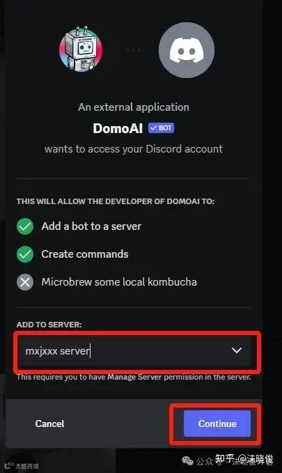 点击后我们选择要加入的服务器,点击Continue。