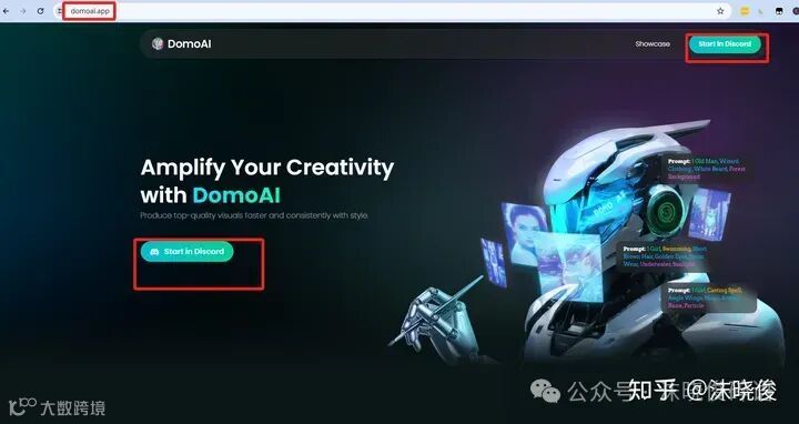 我们另外用同样的浏览器再打开一个网页,我们输入下图中的网址然后点击Start in discord。