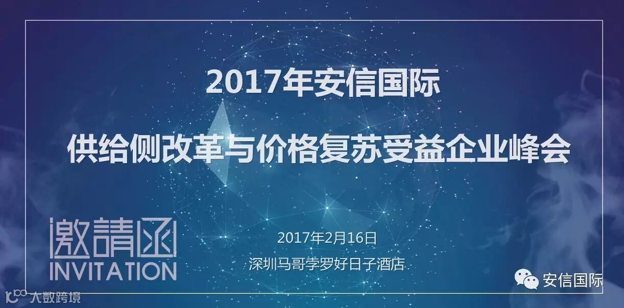 为挖掘相关投资机会,我们诚挚邀请投资者客户出席“2017安信国际供给侧改革与价格复苏受益企业峰会”,与相关企业的高管及我们的行业分析师作深度交流。峰会将于2017年2月16日在深圳福田马哥孛罗好日子酒店举行。