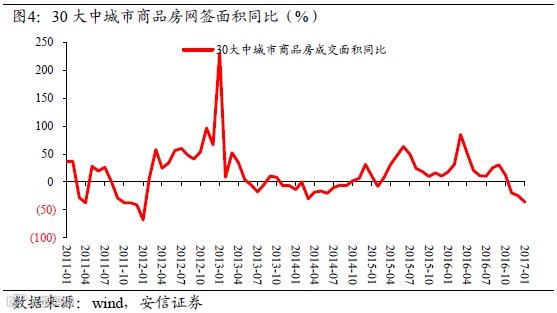 1月份,30大中城市商品房网签面积同比-36%,为过去几年月度最低增速水平。这主要体现了调控政策之后重点城市商品房销售的低迷,当然春节错位对数据也造成了不小的扰动。