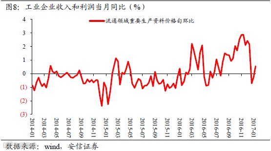 12月当月工业企业收入同比9.4%,为2014年下半年以来的最好水平;利润同比2.3%,较11月有较大幅度的下滑,与收入增速表现背离,这可能受到一些扰动因素的影响,诸如部分大企业因产品结构调整、资产重组计提减值损失、投资收益波动导致利润显著下滑。