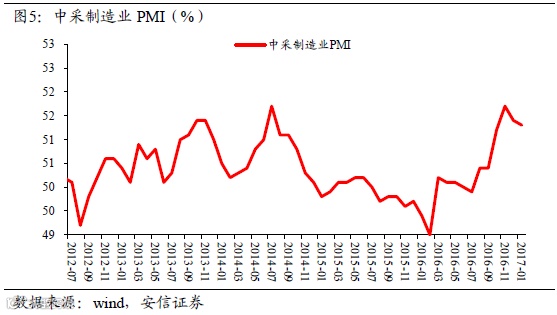 实体经济动能仍然稳健。工业生产指标走势平稳。发电耗煤数据较强。重点企业粗钢产量在环保限产影响减弱后恢复明显。中采制造业PMI录得51.3%,连续第二个月小幅走低,绝对水平仍然处于较高位置。草根反馈银行信贷投放强劲,引来监管层忧虑和相应窗口指导。