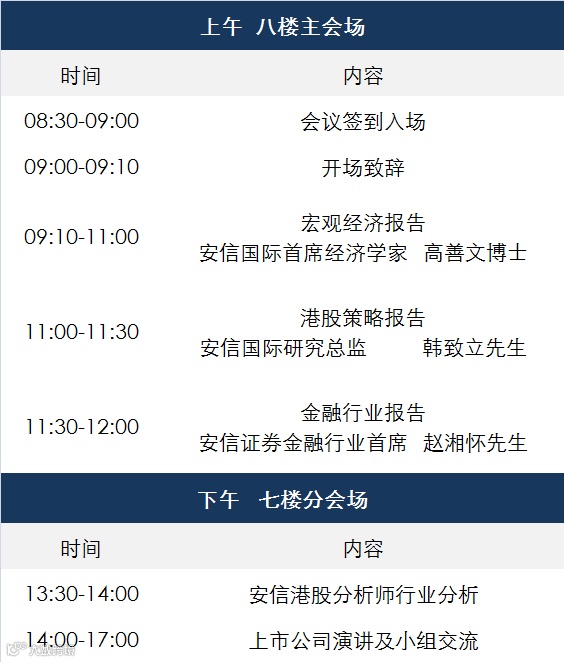 注:如您有意参加本次会议,请与安信国际的客户经理或者安信证券各分支机构国际业务联系人咨询。