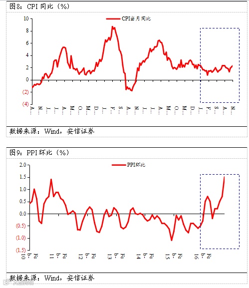 11月PPI环比1.5%,超出了3-4月,并创历史新高。需求平稳、供应收缩,是今年PPI环比持续高位运行的基本原因。具体到最近两三个月,上游特别是煤炭价格的暴涨,成本传导至中下游,加剧了全链条的存货回补,也显著地推升了PPI环比。