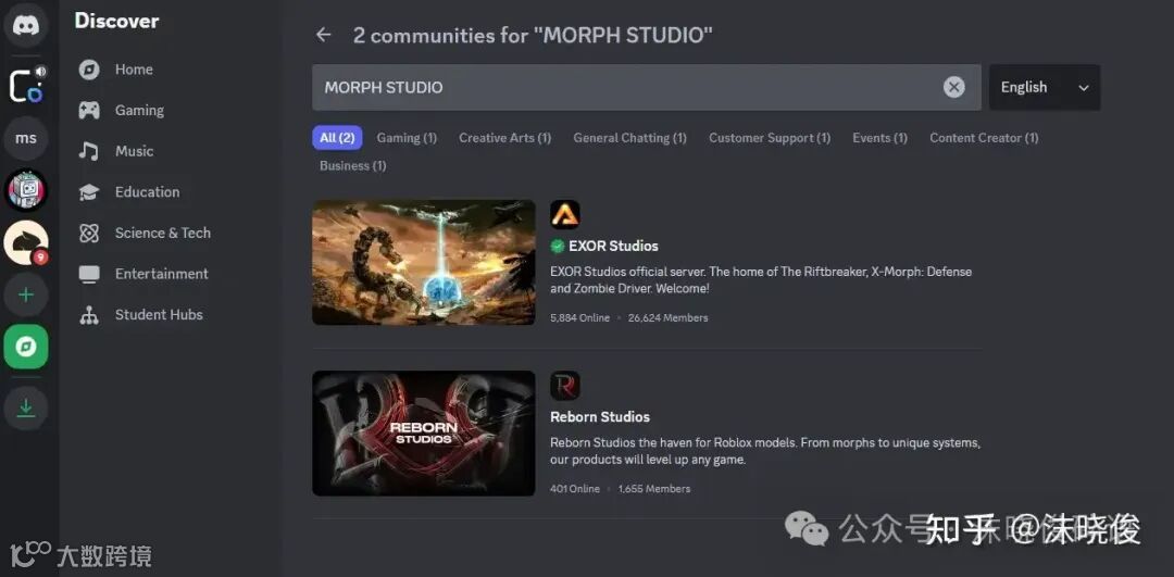下图是我没有通过官网的DISCORD图标进入邀请时候在DISCORD社区搜的字样,我们可以看到,如果你不通过官网或者朋友给你发的邀请链接进入他的频道,你根本就搜不到这个频道。
