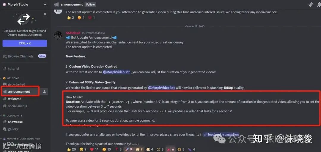 好了,我们来看一下MORPH STUDIO频道的Announcement都有什么参数说明。