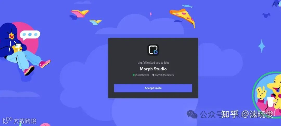 这时,我们就来到了Morph Studio在DISCORD的邀请界面,如下图所示,我们点击Accept Invite。