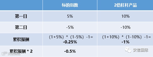 (三)短期交易型产品。杠杆产品提供投资人更多样性的选择,除可进行信用交易外,亦增加交易之灵活度,如对于看好某市场或资产类别走势者,可透过杠杆产品赚取相关指数涨幅倍数之超额报酬。但是杠杆产品有别于一般传统型 ETF,其倍数报酬都是以单日为基准,超过一日会因复利的影响,投资报酬可能会偏离基金投资目标,较不适合长期持有,为短期操作型态的商品。