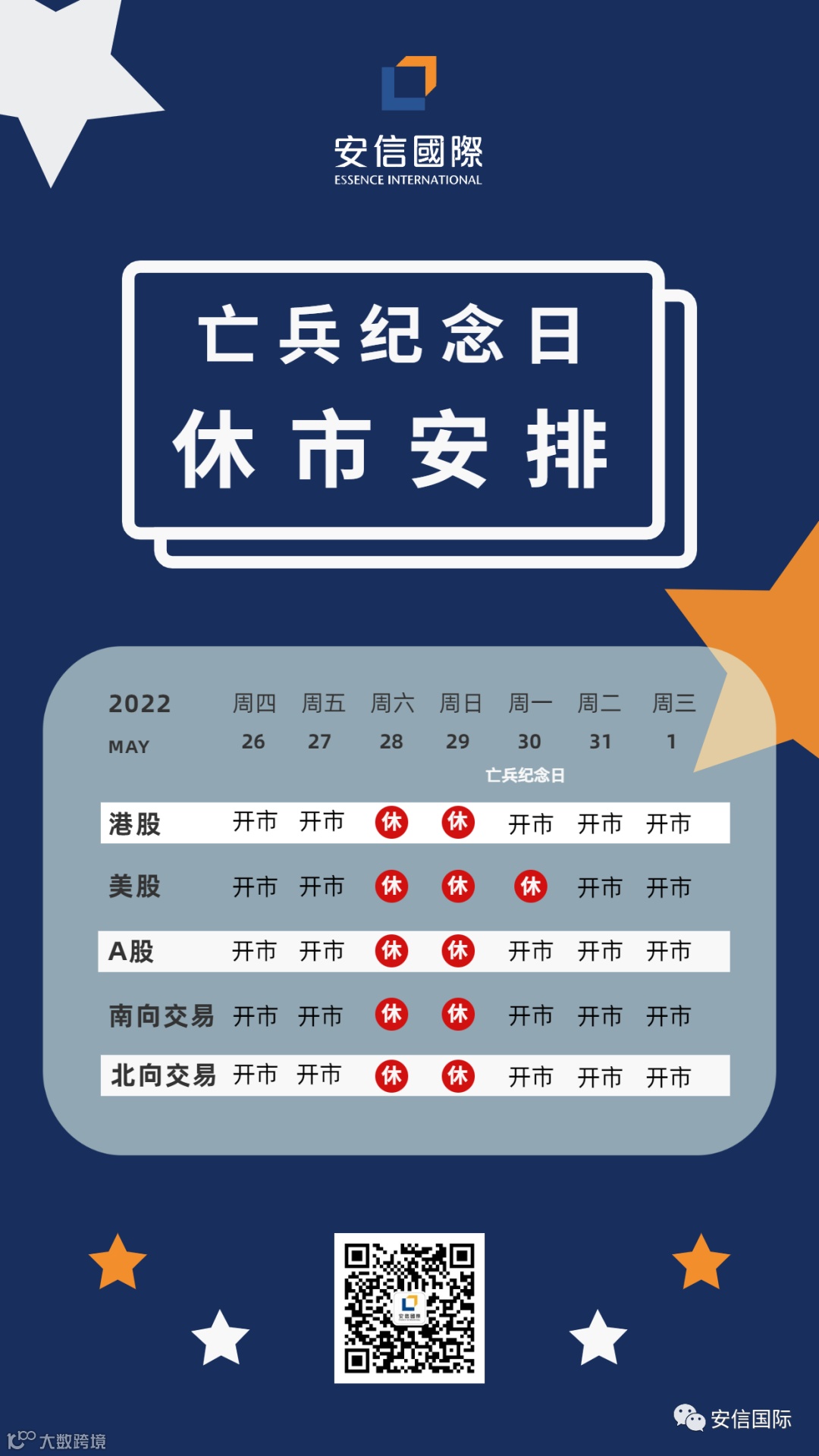 阵亡将士纪念日假期,港股、美股休市安排如下: