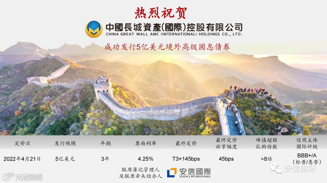 长城国际控股成立于1993年1月,是中国长城资产管理股份有限公司在香港的全资子公司,主要从事投资和放贷业务。长城国际控股作为中国长城资产唯一的境外子公司,一方面,聚焦不良资产收购、管理和处置主业,专注于特殊机遇投资领域,综合运用并购重组手段,发挥跨境业务优势;另一方面,作为集团不良资产经营管理的境外延伸部分,跨境不良资产处置主阵地,充分发挥境内境外资本资源的纽带作用,成为以“市场化、国际化手段服务于集团不良资产主业的专业机构”。