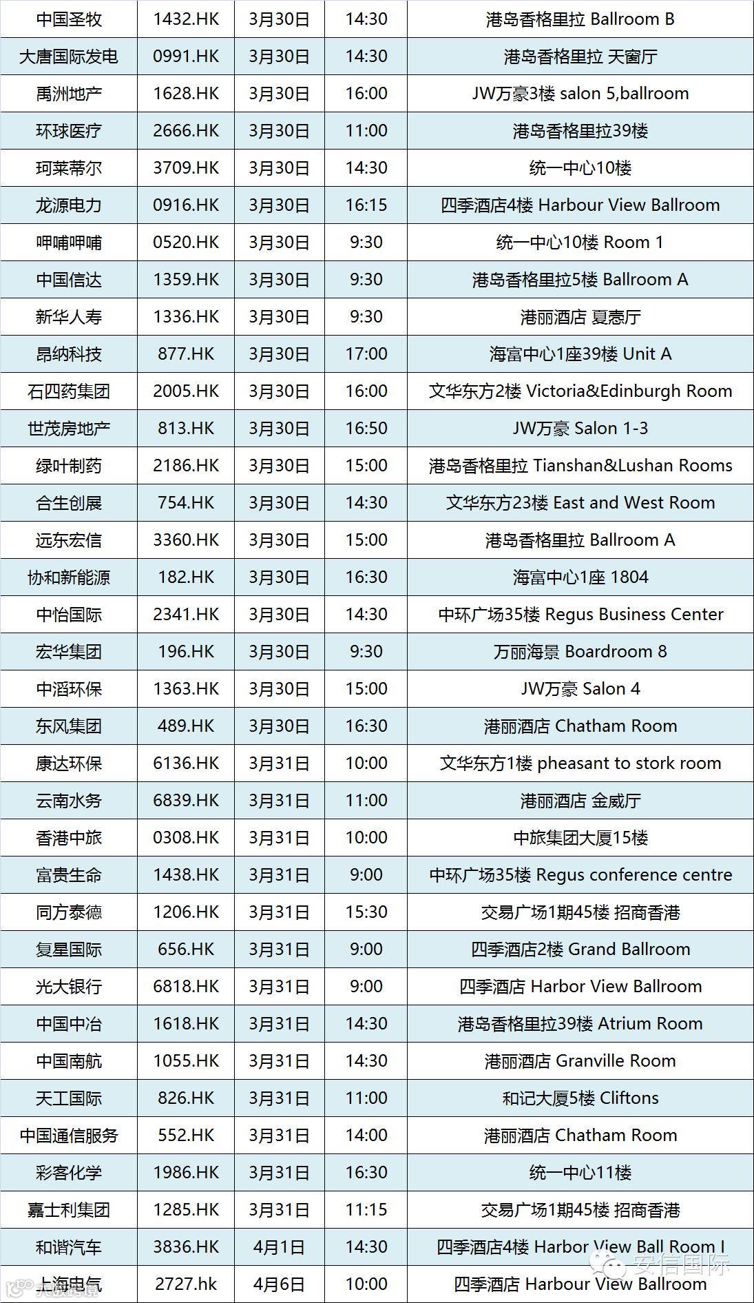 导读:随着业绩公告期的临近,安信国际为您整理上市公司业绩发布会时间表,持续更新中,特供参考。