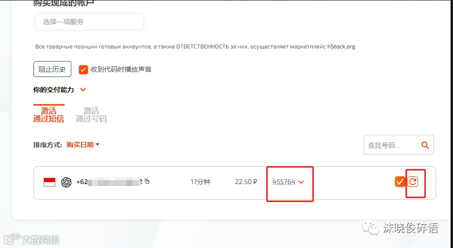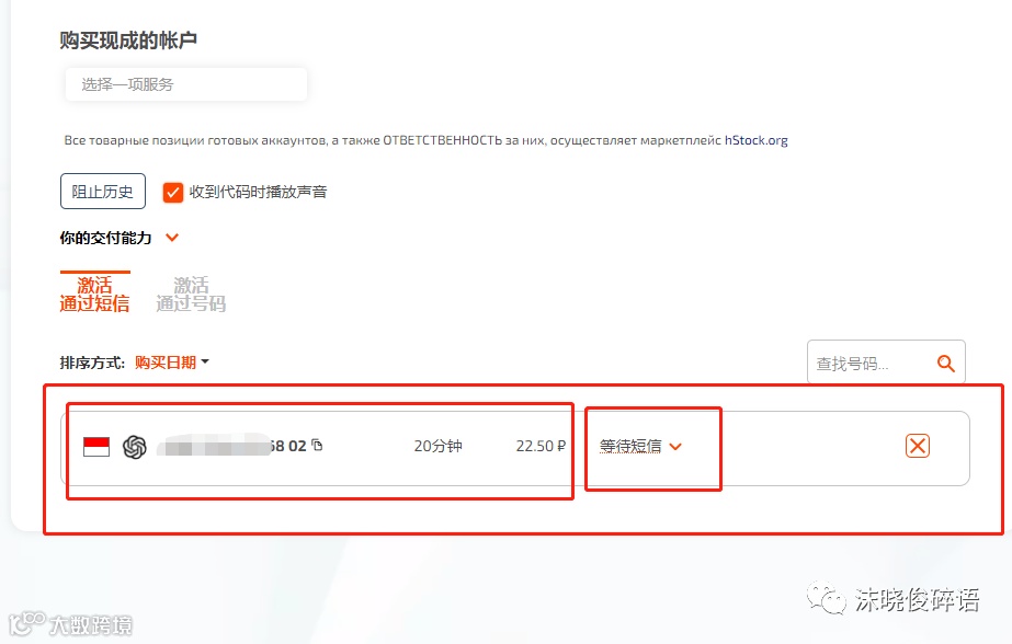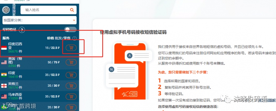 加入购物车以后我们看右边就会出现对应国家的号码以及等待短信字样