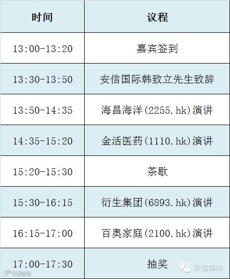 特邀海昌海洋公园(2255.HK)、金活医药集团(1110.HK)、衍生集团(6893.HK)、百奥家庭互动(2100.HK)等具有二孩国策概念的优秀上市公司向投资者分享他们在二孩时代的经营理念和未来展望,并将安排投资者与上市公司高管进行互动交流,共同探讨二孩时代的市场投资机会。参会更有机会赢取智信财经送出的精美好礼!