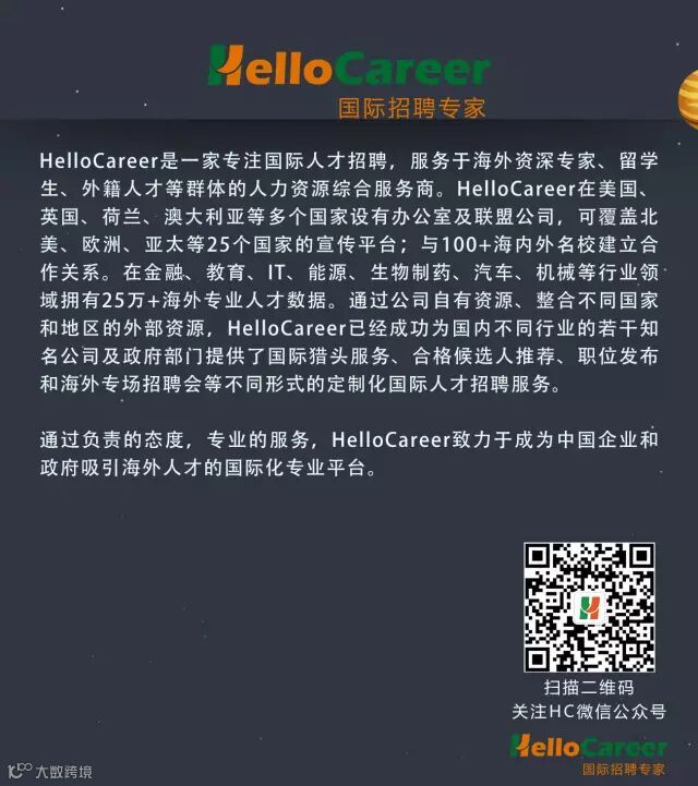 更多活动信息,我们将陆续在HelloCareer国际招聘公众号推送。感谢您的关注!若有任何问题,欢迎在HelloCareer公众号后台留言!