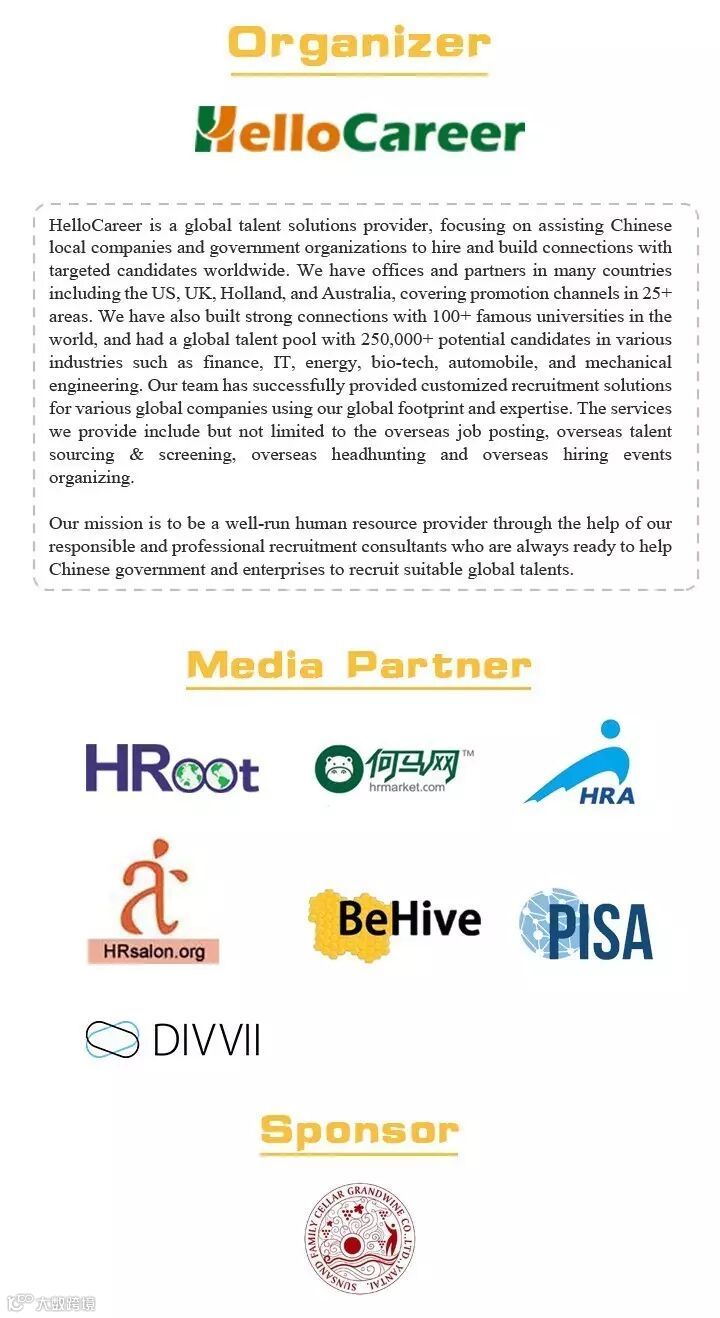 Detailed job info will be shared at 2017 International Talent Salon.