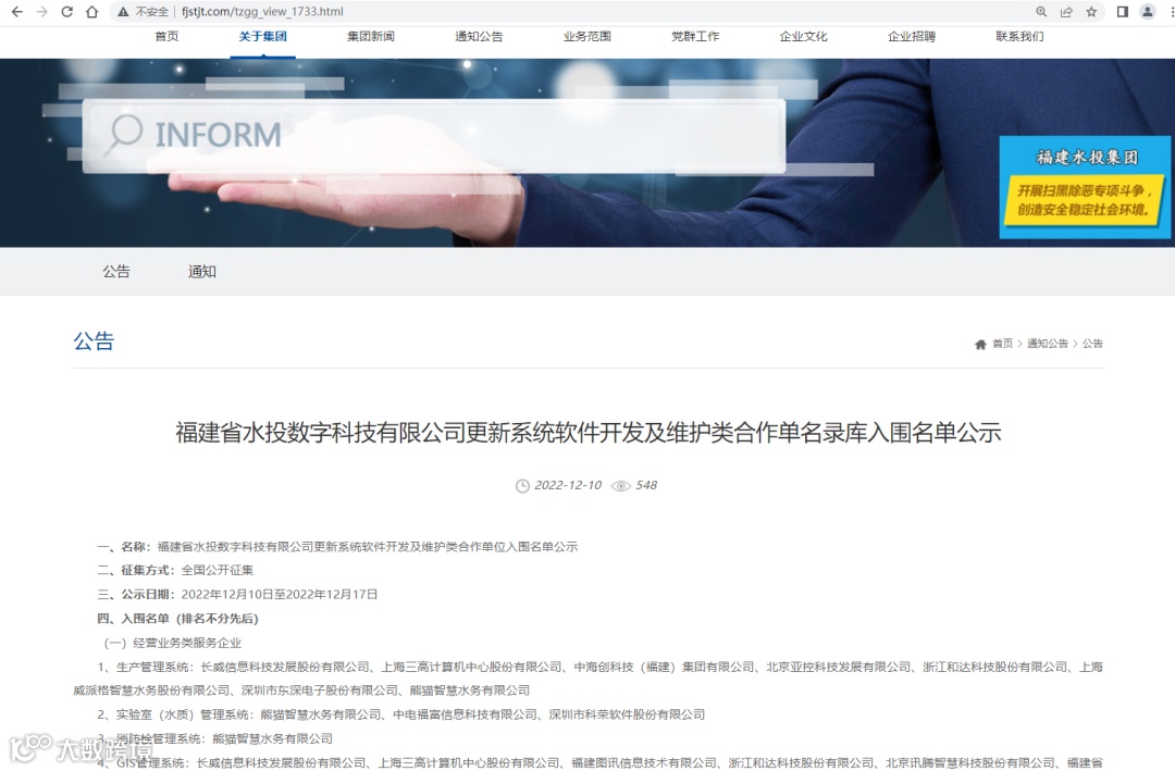 福建省水利投资开发集团有限公司为保障系统软件开发及维护类项目的顺利开展,丰富供应商名录库合作单位,提升供应商整体服务水平,近期针对智慧水务系统产品开发合作单位进行更新评选,合作单位基本要求如下: