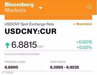在查询其它数据网站发现,在岸人民币位于6.88一线,离岸6.86一线。同时,彭博(Bloomberg),雅虎(Yahoo)和百度中的美元人民币离岸汇率数据仍保持在6.88左右。