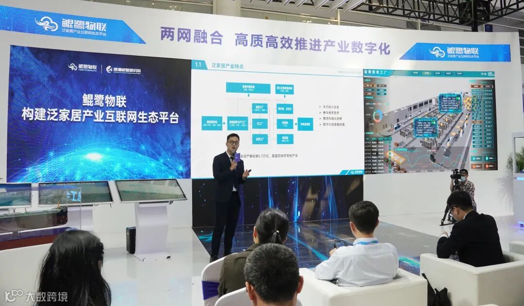 接下来,郭伟鹏详细介绍了如何赋能泛家居产业实现“降本、增效、提质”。他表示,泛家居产业总产值5.7万亿的泛家居产业参与者类型众多、需求痛点多样、数字化程度相对较低,需要构建“产品+服务”分类分级精准定位的产品体系。现场他展示了鲲鹭智能制造整体解决方案,并详细介绍了鲲鹭云盒、云造、云检、“掌上工厂”、数字化诊断咨询、数字孪生等产品和服务在泛家居行业场景的应用价值。