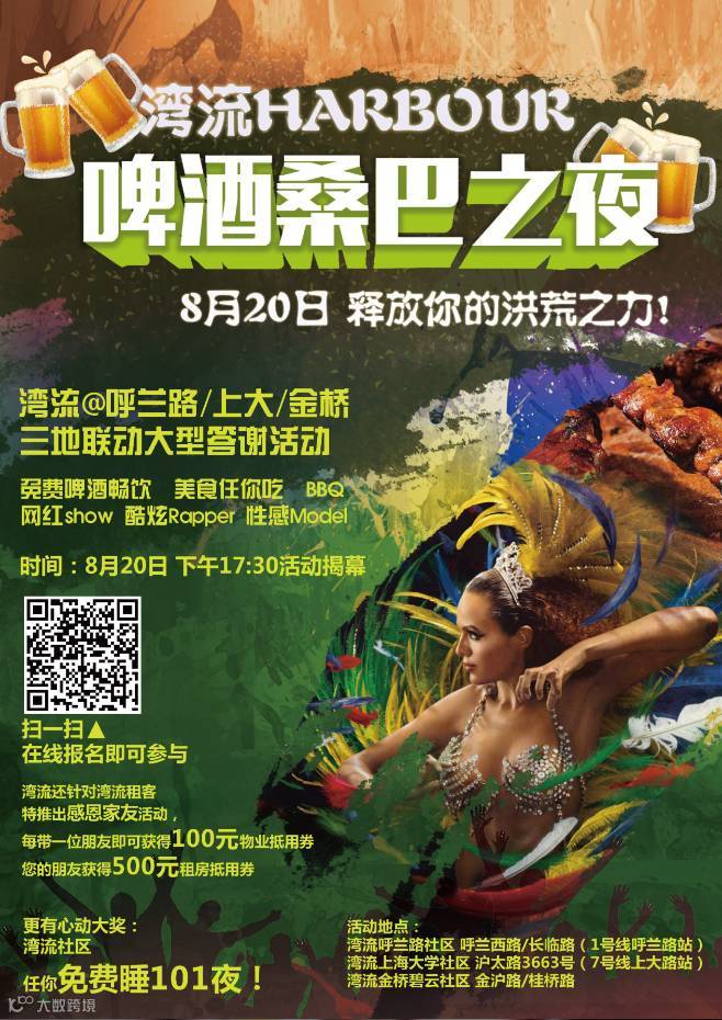 网红直播酷炫rapper表演热情桑巴舞性感model啤酒免费开怀畅饮美食心享BBQ!