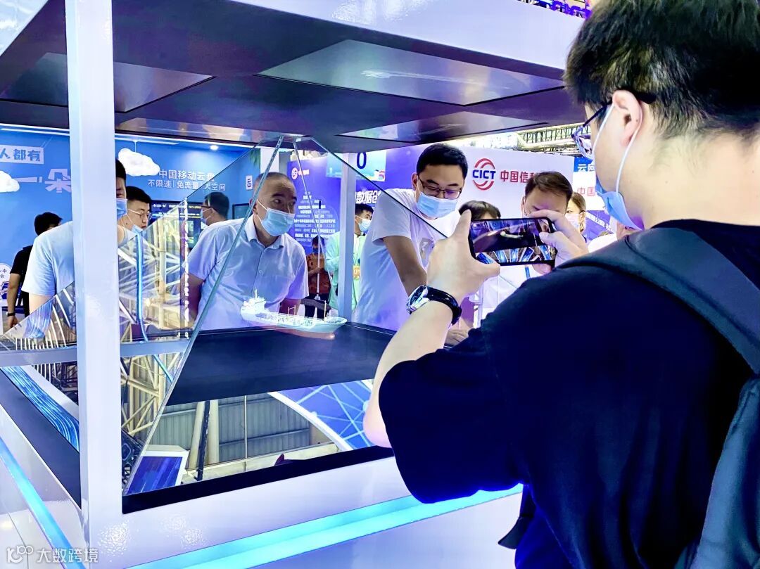 展位现场,全面展示了集团在区域优势产业集群的赋能成效,以及在矿山、纺织、海运等众多行业领域实践数字化转型升级的业务成果,超宽巨幕大屏、3D全息台、3D全息风扇等精彩项目引人驻足。