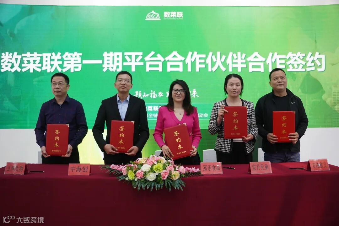 随后,天马食品、东水食品、泽霖食品、味太太食品、嘉乐食品、宏升兄弟、方便煮义、正味生物、金麦园食品、乐鸿国际、醉悦臣生物、大润优餐饮,共12家企业代表上台,作为数菜联第一期平台合作伙伴进行签约。