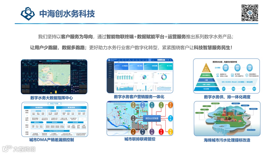 公司是中海创科技集团旗下深耕于智慧水务领域产品研发、生产、销售的行业科技公司,为水务行业客户提供专业的数字水务解决方案。通过智慧物联设备+数据赋能平台+运营管控推出系列产品和服务,以客户服务为导向,为水务行业用户提供更主动更贴心的服务。