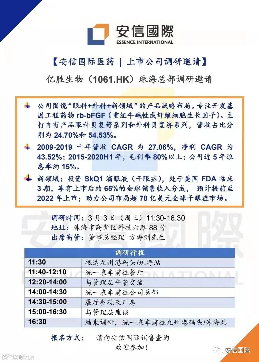 安信国际 | 价值连线 (3月3日,亿胜生物调研)