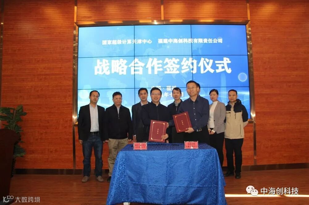 座谈结束后,双方领导出席签约仪式。天津超算中心主任助理、技术总工冯景华和中海创科技集团副总裁林泽生代表双方签署了战略合作协议。