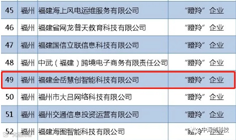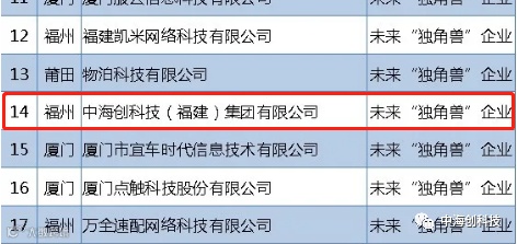 5月25日,福建省数字办正式公布2020年度全省数字经济领域创新企业名单,该名单按企业规模与发展特点,包括3家“独角兽”企业、14家未来“独角兽”企业、72家“瞪羚”企业,涵盖软件与信息技术服务业、电子信息制造业、新一代信息技术产业、制造业融合业态、农业融合业态、服务业融合业态等。
