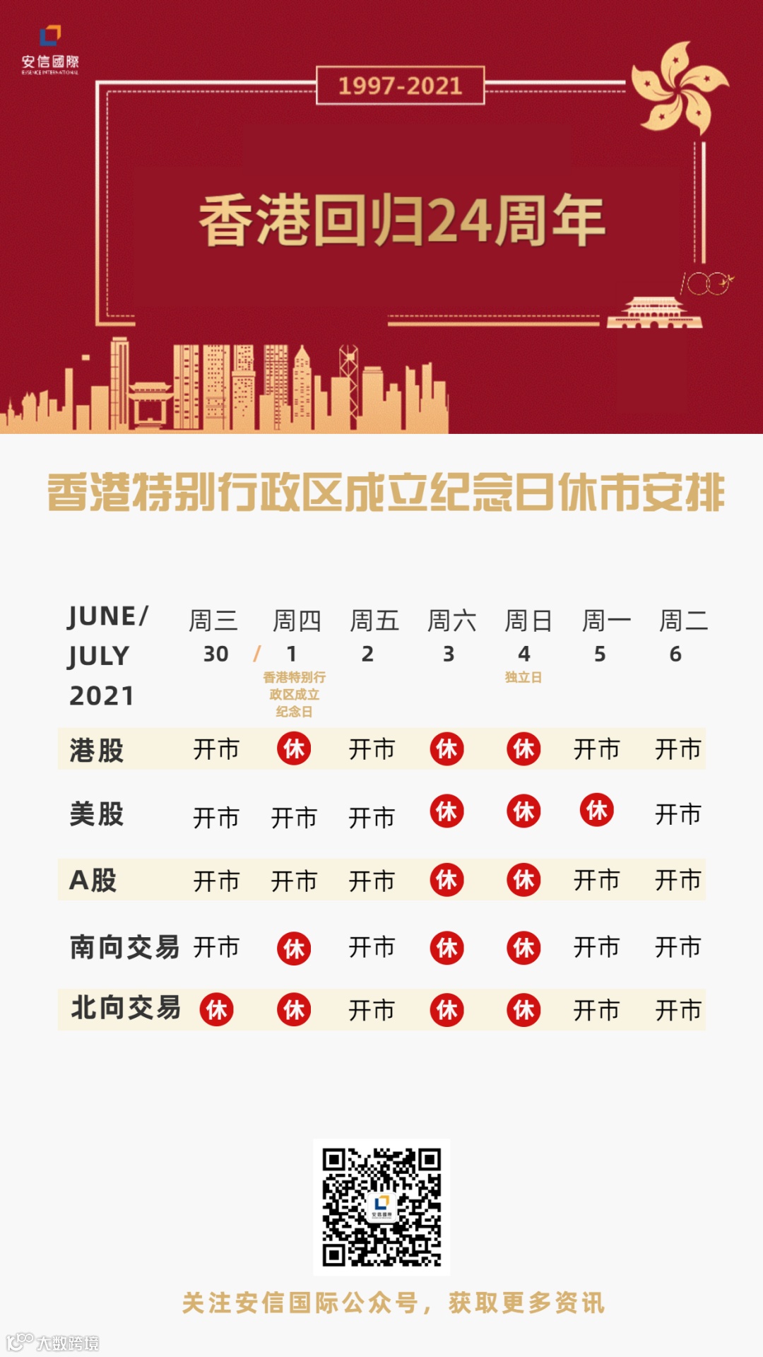 安信国际 | 香港回归纪念日休市安排(今日北向交易关闭)
