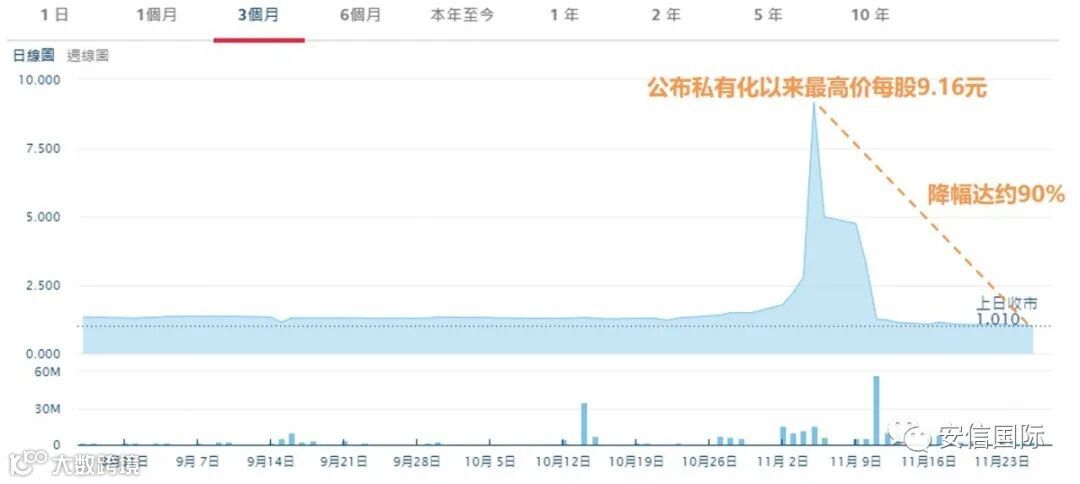 研祥智能自2020年6月底公告私有化计划以来,股价一度飙升。公布私有化失败至今股价重挫九成,要约人前期努力皆付诸东流。
