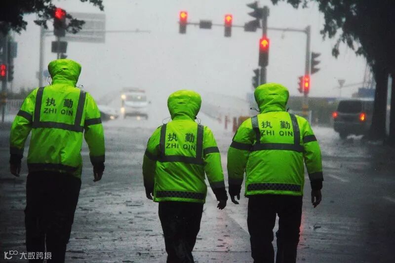 但是在街头,一抹又一抹熟悉的荧光绿,穿梭在狂风暴雨中。他们好像不怕风,不怕雨。