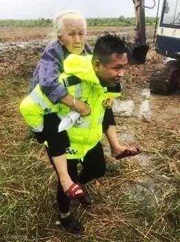 从开始救援的时候起,民警就一直背着老人,一直到警车开到斗门白藤头城南派出所,因为警车底盘比较高,为了让老太太更轻松的趴在自己背上,民警完全跪在地上背上了老人。