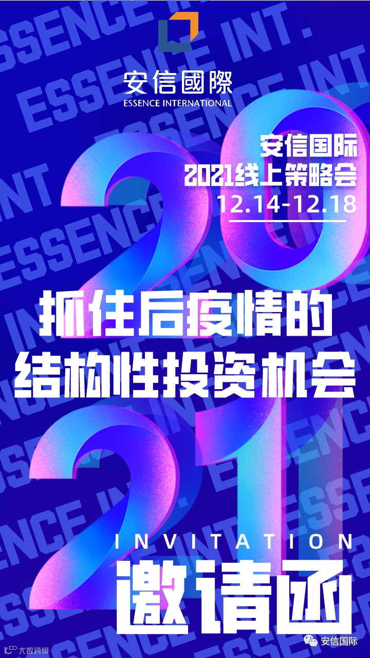 导读:安信国际2021年度线上策略会兹定于2020年12月14日经线上直播,借此诚邀您拨冗参加!